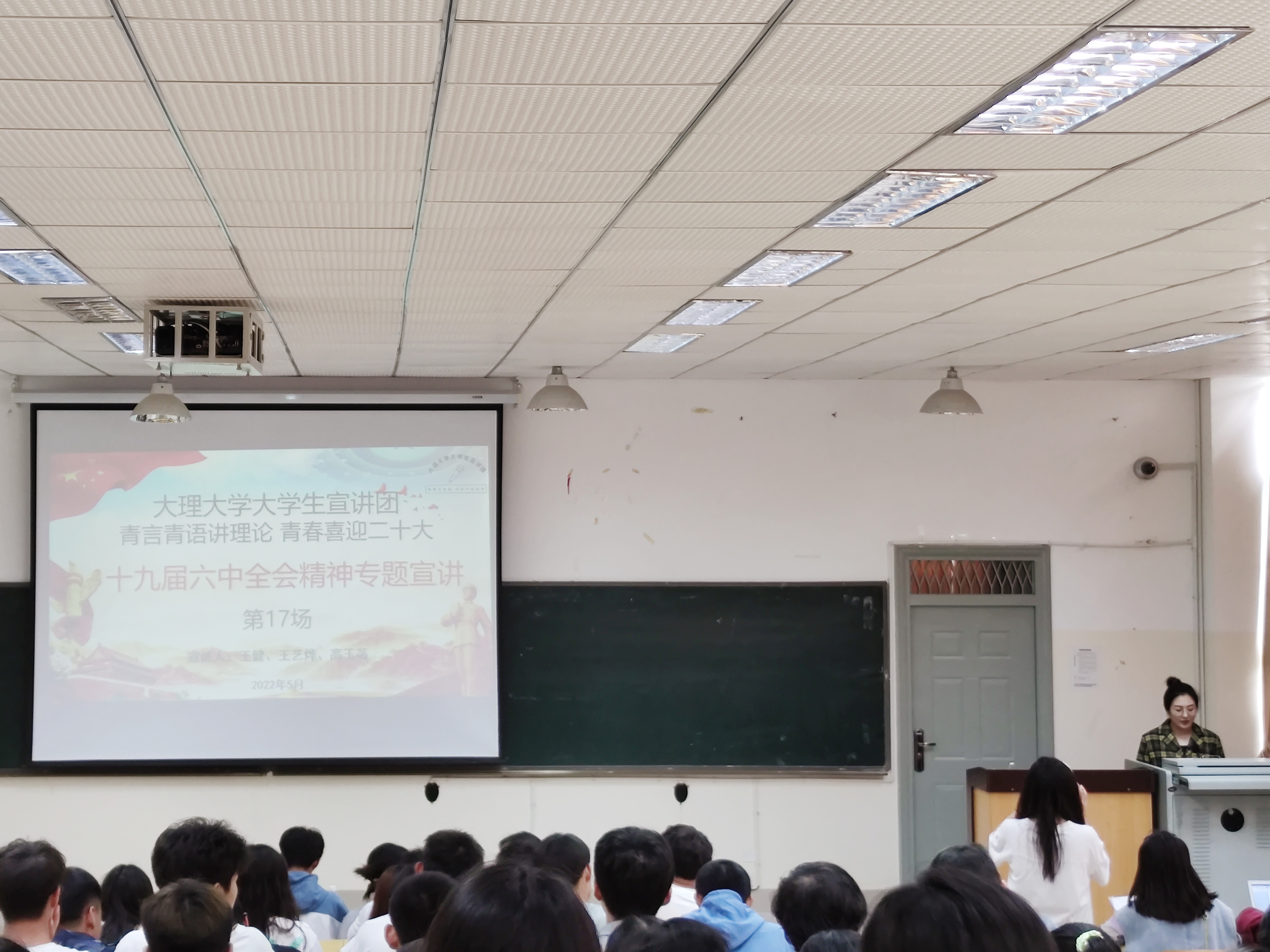 宣讲现场,主持人韩永萍生动解读十九届六中全会的重要精神和伟大意义。王健同学带领学习党的百年奋斗重大成就和历史经验,讲述“时势促英雄,英雄促时势”的长征精神、抗美援朝精神、抗疫精神。