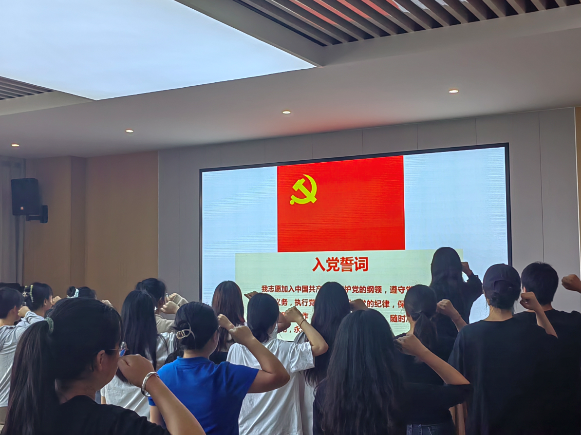 大会在国歌声中拉开序幕,教师党员为2024年上半年新发展的学生党员佩戴党徽,吕志华同志领誓,新党员进行入党宣誓,老党员重温入党誓词,师生党员声音洪亮、铿锵有力,更加坚定了师生党员向着未来道路继续前进的决心。