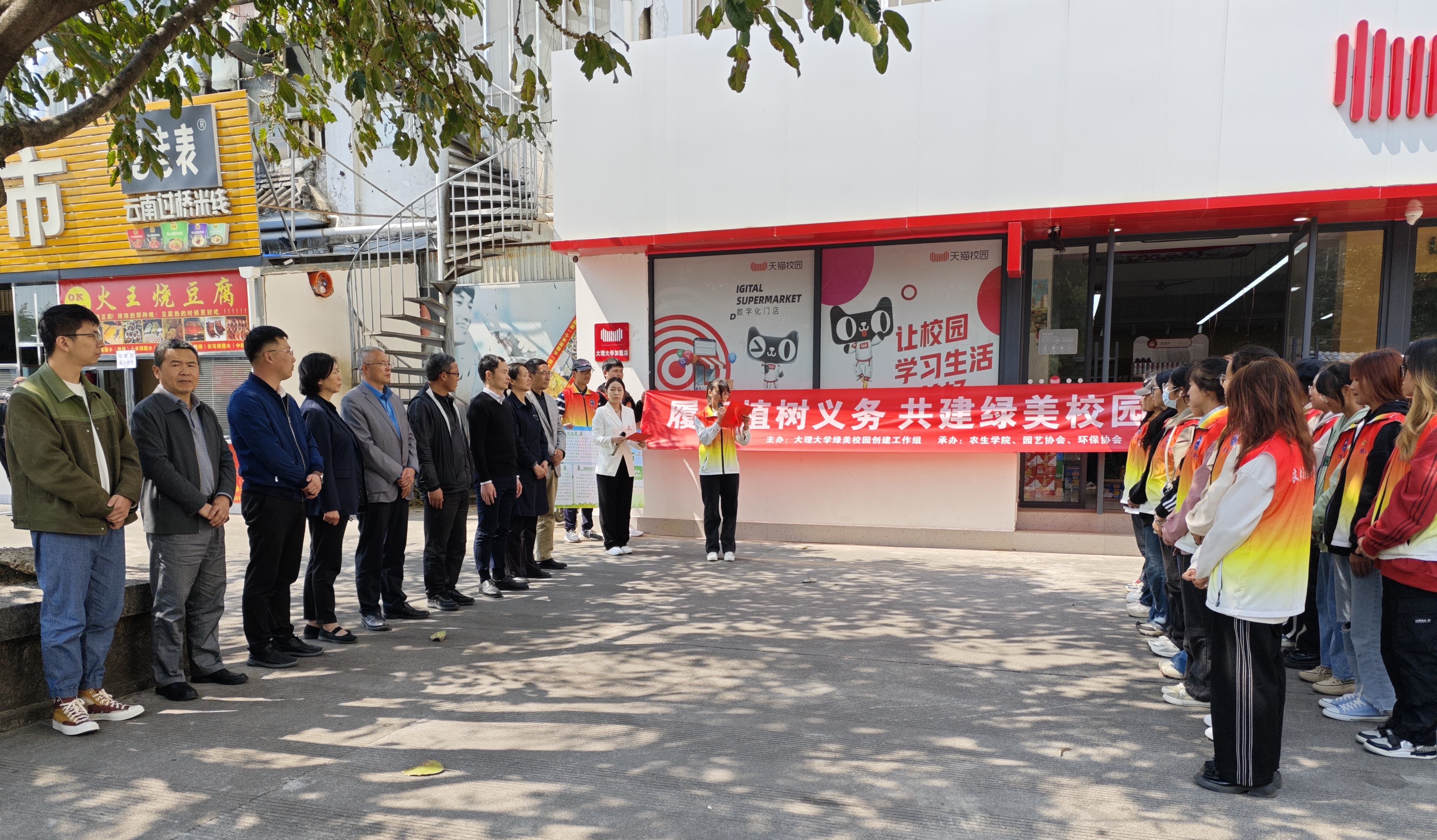 3月12日,是第四十六个植树节,我校在古城校区举行了“履行植树义务 共建绿美校园”植树节活动。学校副校长夏从龙出席并宣布大理大学“履行植树义务 共建绿美校园”植树节活动正式启动。资产经营有限公司寸忠堂总经理;校团委张伟书记;农生学院党政领导、团委书记、植物学专任教师、协会指导老师及青年志愿者代表共百余人参与。
