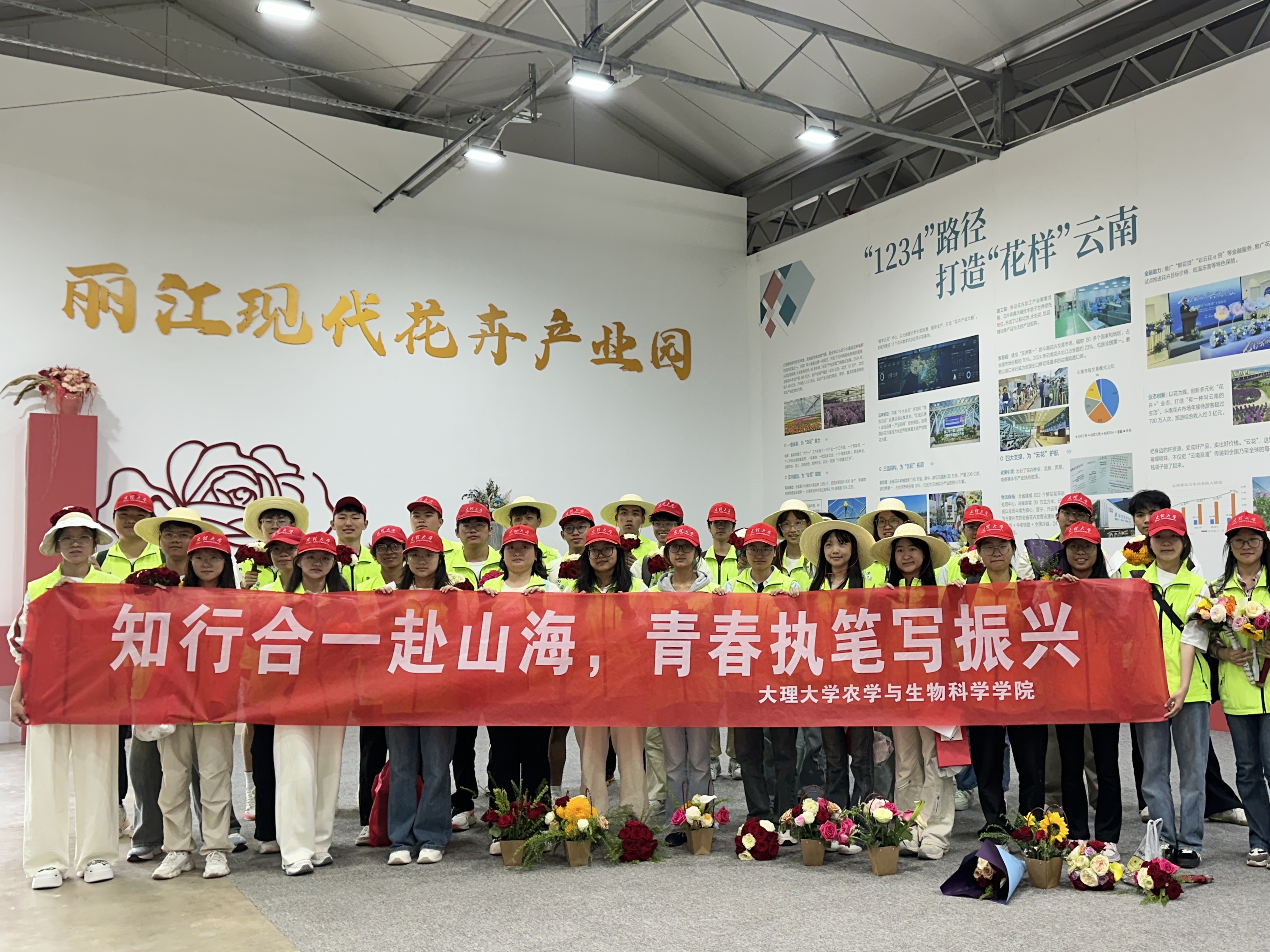 实践过程中,团队跟随习近平总书记的脚步,深入丽江现代花卉产业园,调研高原特色农业发展新模式,掌握当地如何根据区域资源禀赋和基础条件实际出发,推动产业转型升级,促进高质量发展。此外,为了更为全面深入地掌握区域高原特色农业发展现状,团队还到云南欧亚乳业和泰牧场,洱源海菜花产业研究基地、北京市花木有限公司云南种苗基地,鹤庆金墩小白龙现代农业产业园花卉种植基地,大理大学鲜食玉米科技小院等地进行实践调研。