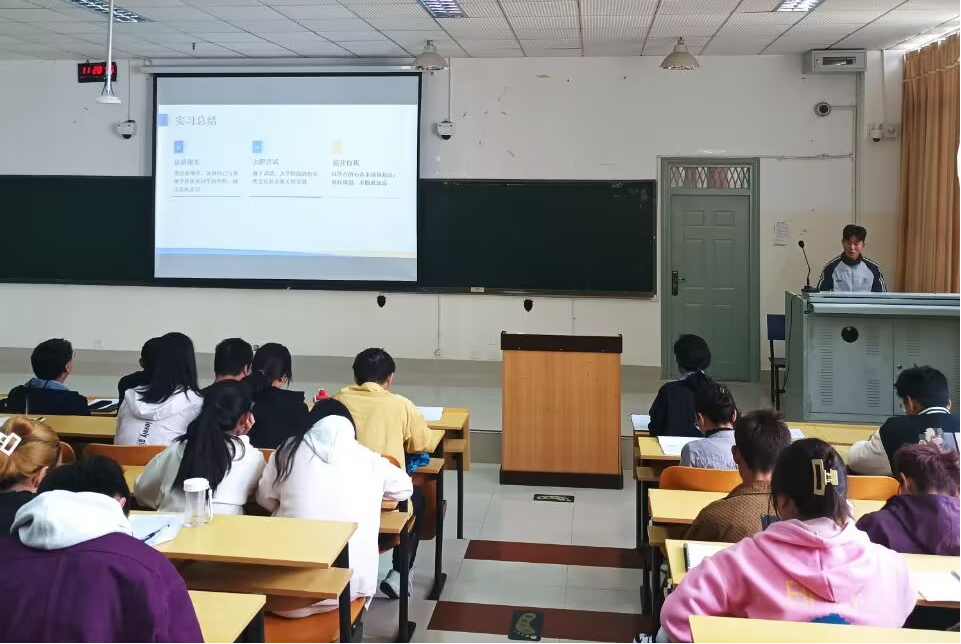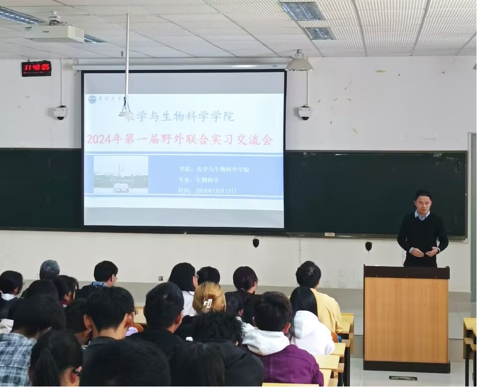 会上,王吉申作为实习指导教师代表介绍了联合野外实习的基本情况,以及参与实习学生的遴选条件。朱峻瑶、刘廷祥作为联合野外实习学生代表,向2023级与2024级生物科学专业的学生介绍了野外实习过程、内容、收获与体会。